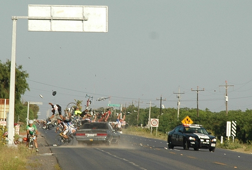 An American drunk driver, apparently asleep at the wheel, plowed into several cyclists during a race in Mexico, killing one and injuring the others. The photo is absolutely terrible, but this is the reality when cars collide with cyclists. I can imagine this is what happened when a similar accident occurred near our old house in Cupertino, when a California Highway Patrol officer killed two cyclists along Stevens Canyon Road.