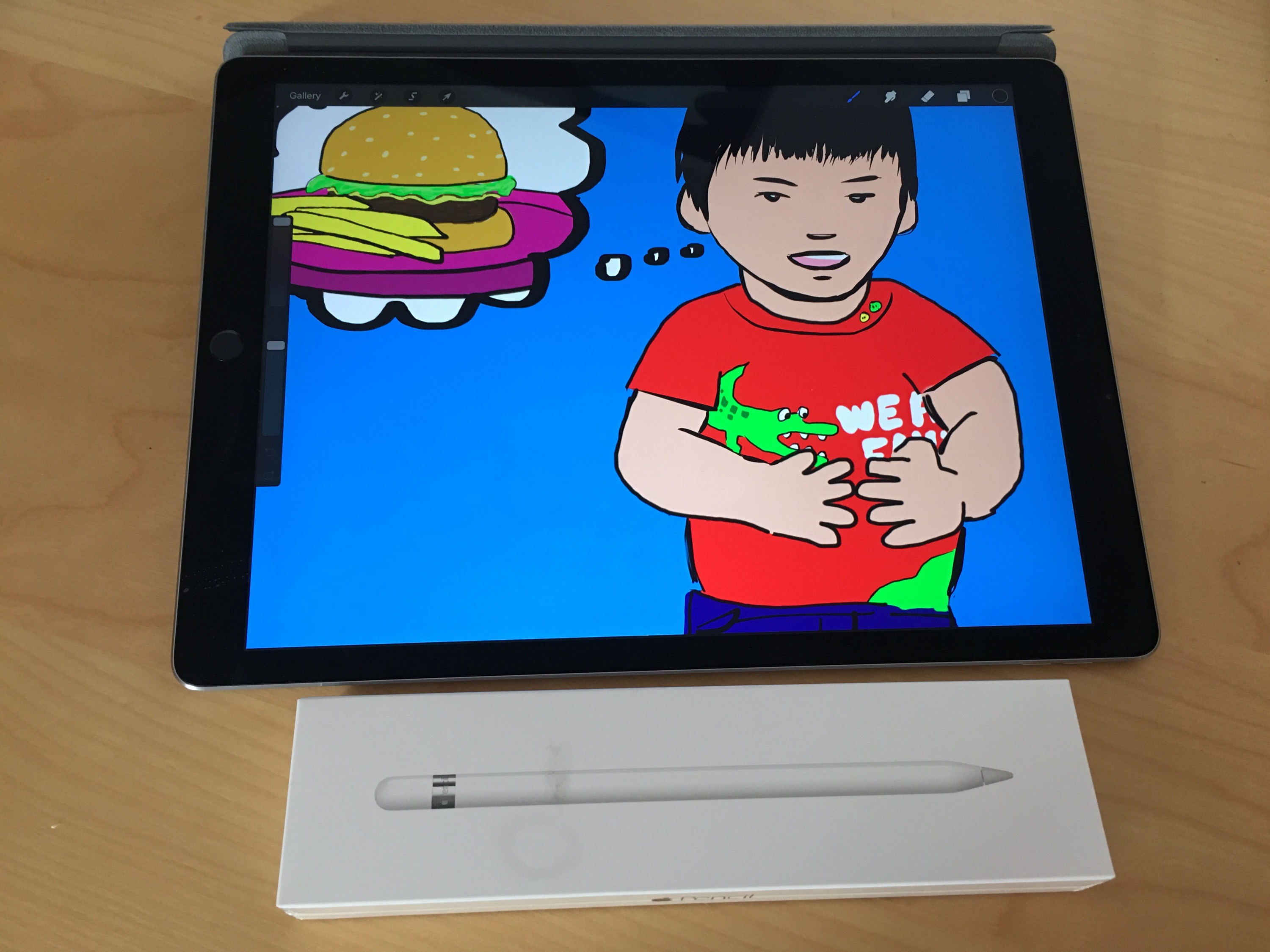 Up until now, I have been using an Adonit Jot Touch Bluetooth Stylus1 and Procreate on an original iPad mini for my digital illustrations. Shown above is a page from a children’s book that I am making for my son. While the Jot Touch was certainly better than using my fingers, I have not been entirely satisfied with it. The lag, the weird plastic disc at the tip, and the buttons that I kept pressing by accident were annoying. The lack of good palm rejection in all of the iOS apps I’ve tried to date made drawing an awkward experience.