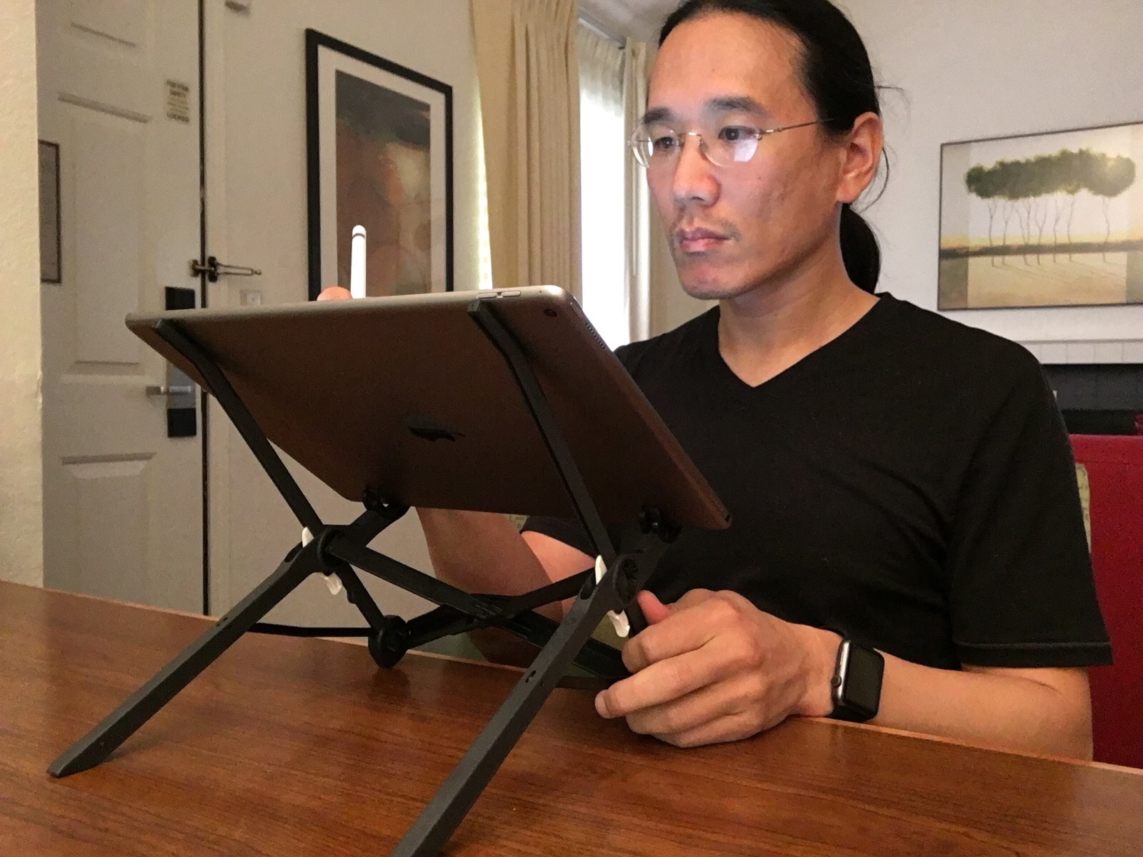 On this trip, I left the laptop at home and brought only my iPhone and iPad Pro. Using the iPad Pro as a drawing tablet has been a revelation, but I do notice increased neck and shoulder fatigue while illustrating because I am constantly hunched over. And, while it doesn’t replace the MacBook Pro for all my use cases, the iPad Pro can certainly function as a laptop replacement for many of my needs. If I paired it with an external Bluetooth keyboard (I am still waiting for the TextBlade to ship), the height of the iPad propped up with the Smart Cover) is still lower than I would like. The dynamic design of the Roost allows me to use the iPad Pro for both purposes, and my initial ergonomic impressions are positive.