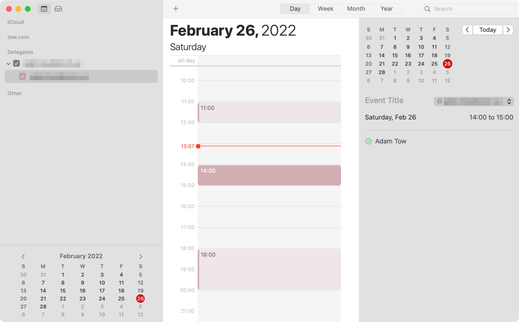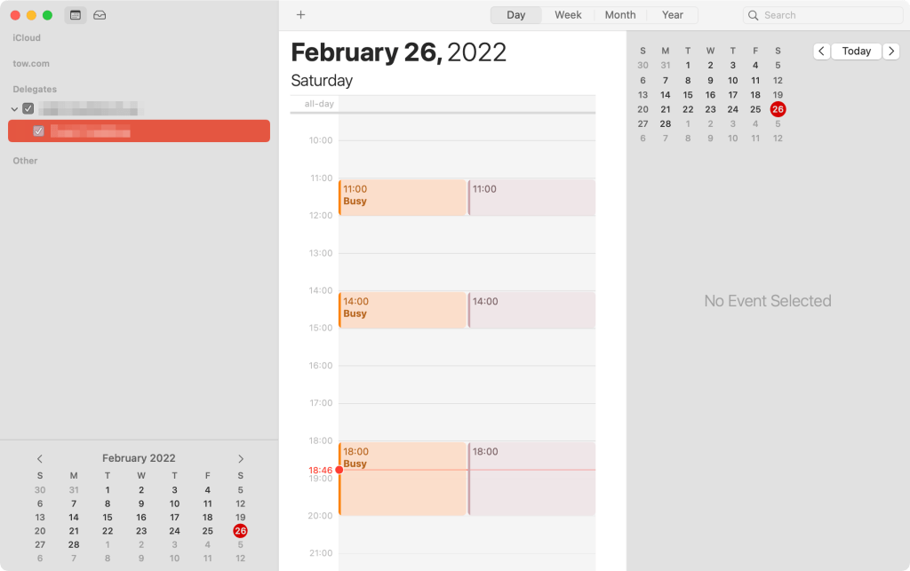 TIP: You can hide delegated calendar in macOS Calendar so you don’t see double events at the same time.