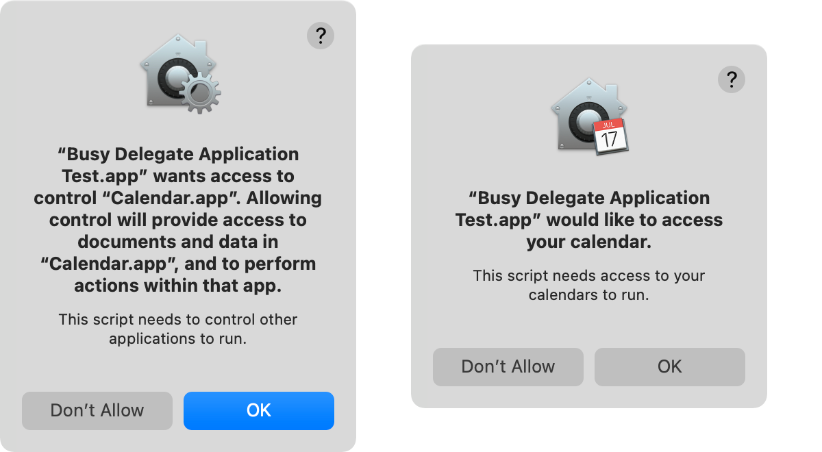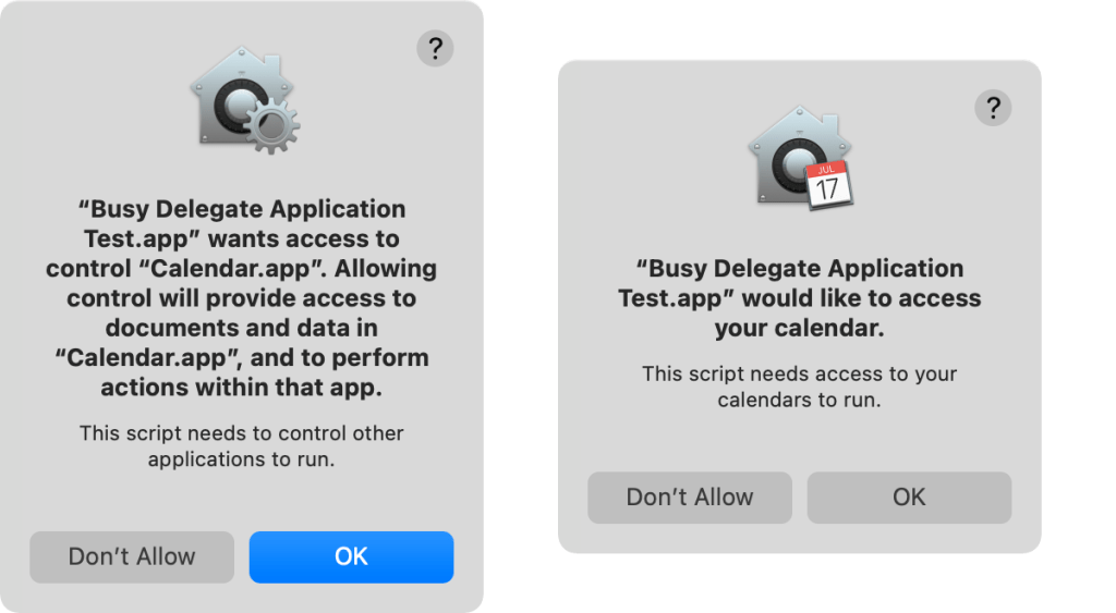 To avoid this, let’s use the osacompile command line tool to create an application from a script. Suppose the script exists on the desktop with the filename BusyDelegate.scpt.