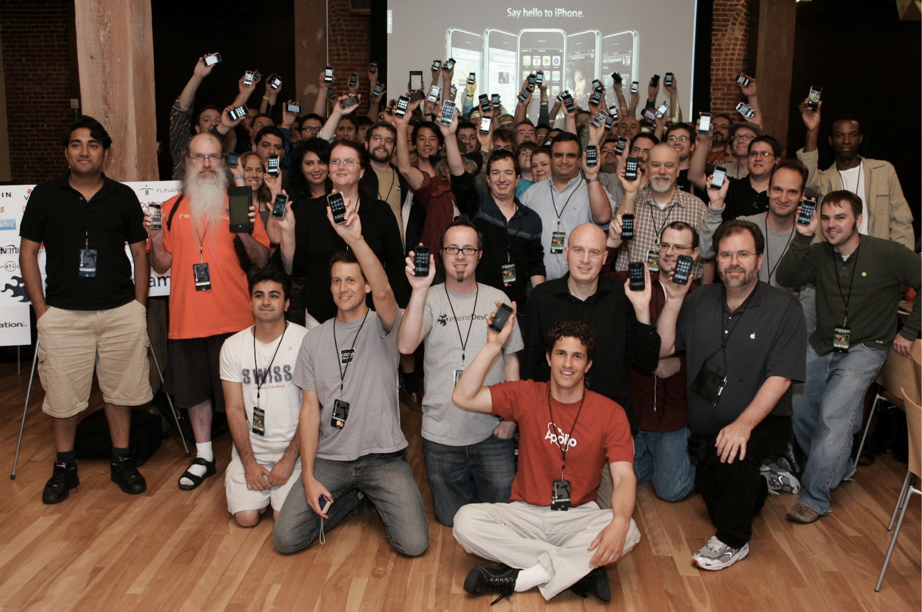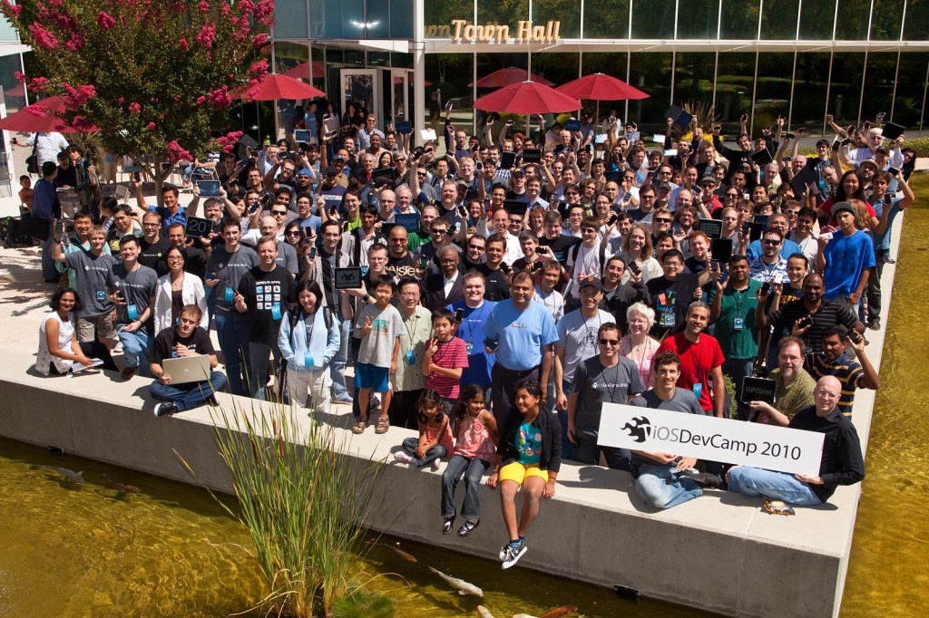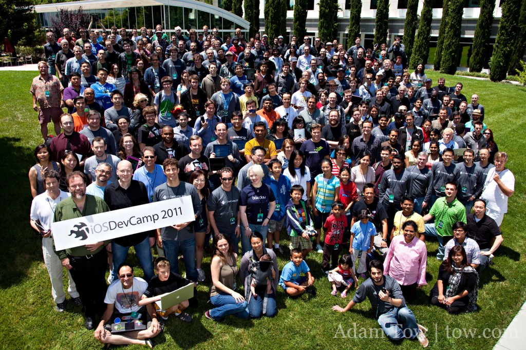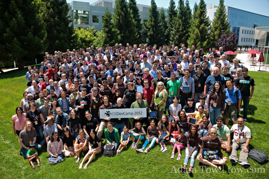 In 2007, Raven Zachary and Dom Sagolla organized the first iPhoneDevCamp for the Apple iPhone. In subsequent years, they held additional events, iOSDevCamp and iPadDevCamp, that brought together members of the Apple developer community for a weekend of learning, hacking, and developing applications for these mobile devices. You can see in the photos below how the numbers grew dramatically over the years, matching the explosive trajectory of the devices’ growth in the marketplace.
