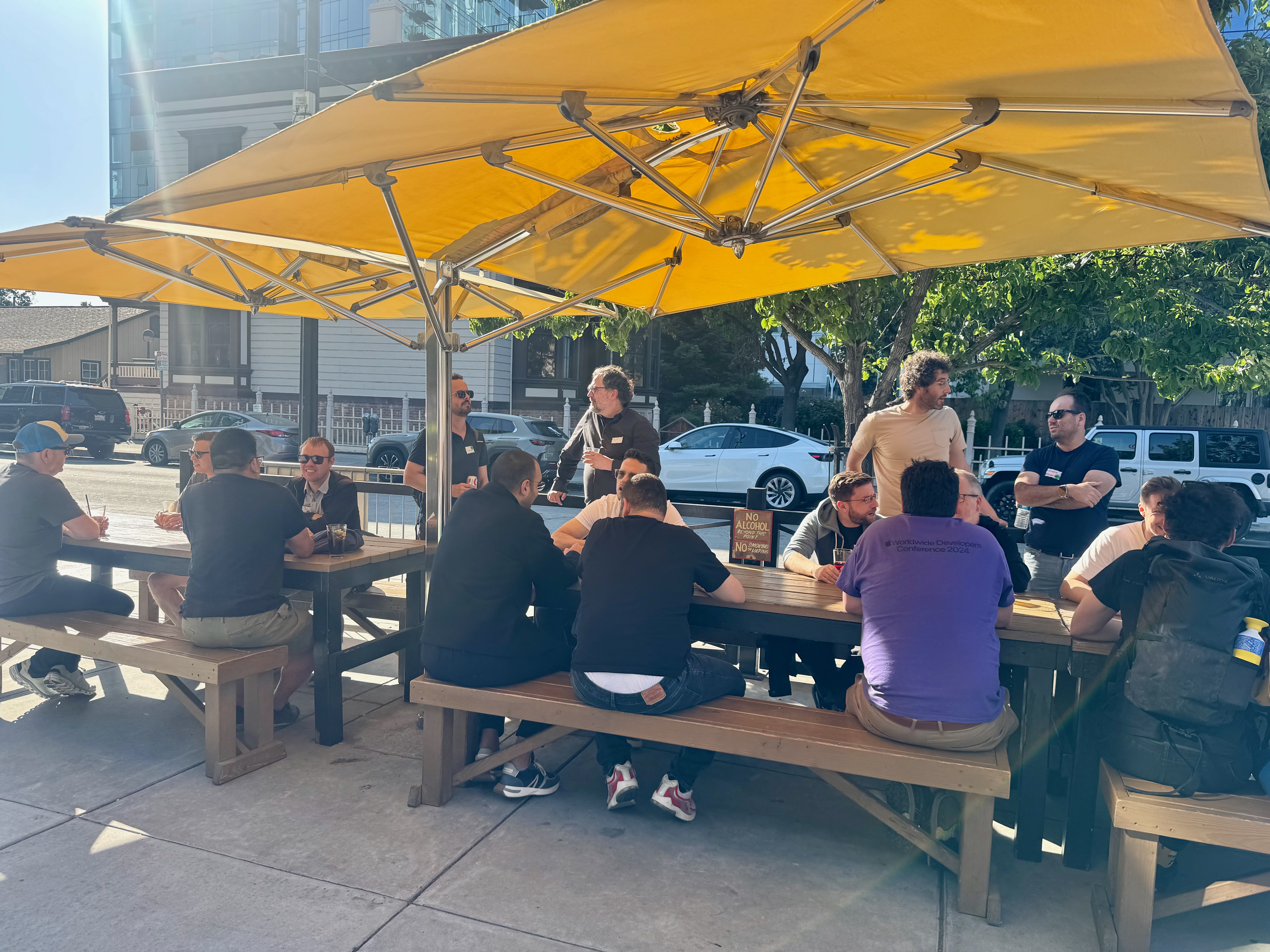 I’ve been hosting this gathering for the past two years, but I’ve been attending events in the Apple community for much longer—everything from Deep Dish Swift (the past two years) to iOSDevHappyHour, Core Coffee, Live near WWDC, and of course, WWDC itself, which I’ve been going to for many years. At this point, it’s getting hard to remember where I first met some folks—was it at Deep Dish Swift in Chicago, a Core Coffee meetup during WWDC, an online Zoom session for iOSDevHappyHour, or in the dim light at a Breakpoints concert? Regardless, it’s always great to reconnect with my cohort in the Apple community.