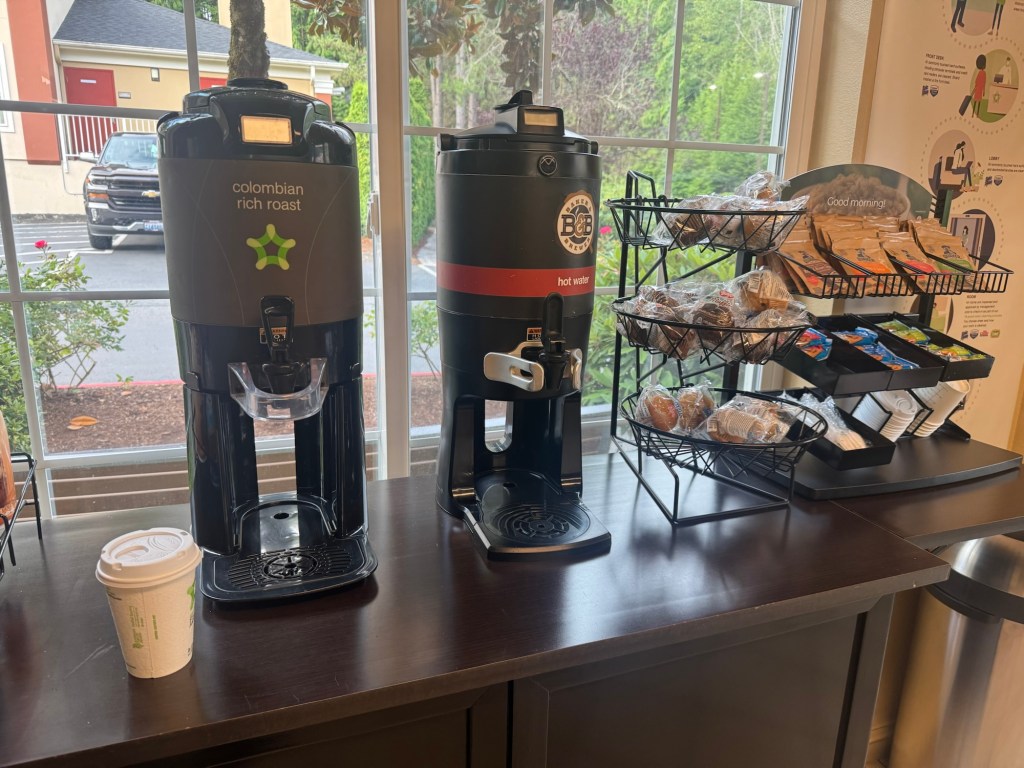 I am not a regular coffee drinker, however, and I wasn’t going out of my way to buy coffee on this trip. The hotel offered free breakfast with coffee each morning from 6:00 to 9:30 am. So I loaded up on a cup or two to get me to the championships. I also took advantage of the free coffee at the airport lounges in San Jose and Seattle during our travel days.