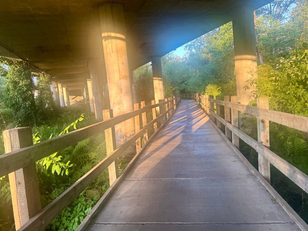 I found the bus experience to be quite pleasant, as long as the bus was on time; there were two days when we had to walk back to our hotel after crossing the bridge into Bellevue because we missed the bus. The walk was under two miles, and since we were unencumbered, it was—mosquitos aside—just fine.