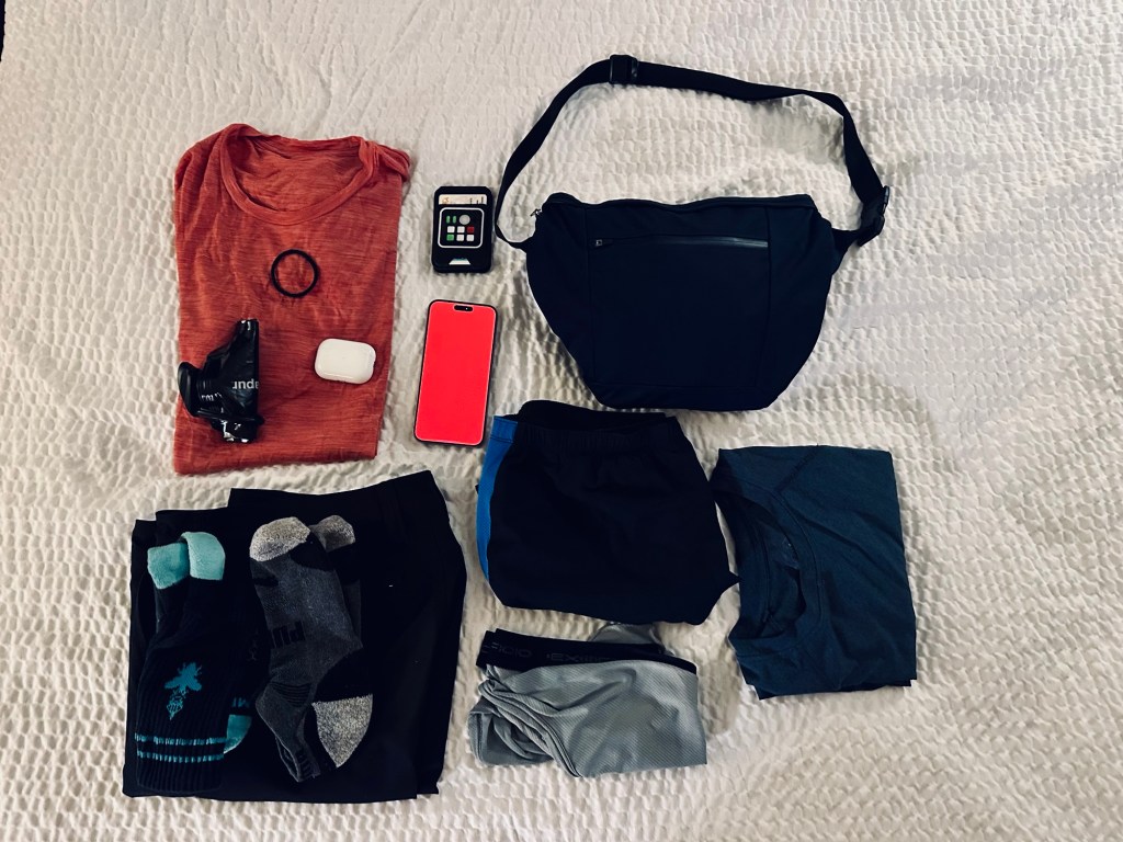This was also an opportunity to try a slightly different load out. When you are not bringing that much to begin with, there isn’t that much you can change. Years ago, I had purchased this Western Rise Meta Shell rain jacket. Described as “the ultimate men’s rain jacket for travel and outdoor activities,” the Meta Shell packs into its own sling bag. In this configuration, there is an external zippered pocket for storing a small amount of items. The main pocket where the jacket is packed into can also be used for some storage. To maximize the available space, it’s important to pack the jacket instead of stuffing it in haphazardly.