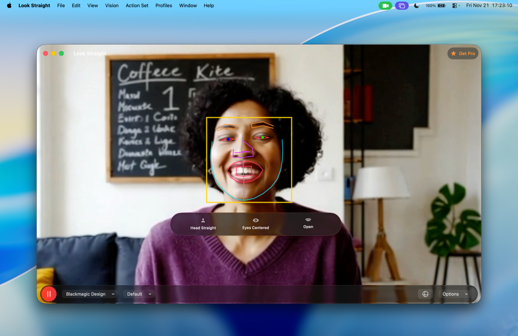 Actors, presenters, and video creators can use Look Straight to practice camera alignment and awareness.