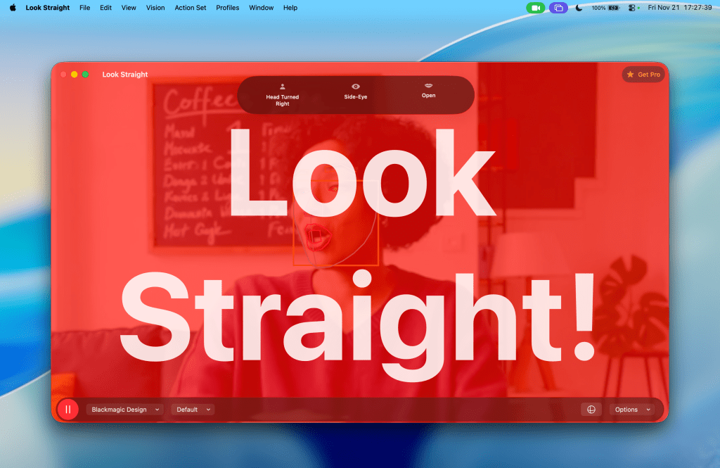Look Straight helps you maintain focus, awareness, and control through face, head, eye, and mouth detection. Use it for productivity, accessibility, or creative automation. Here are some use cases for how you can incorporate Look Straight into your life.