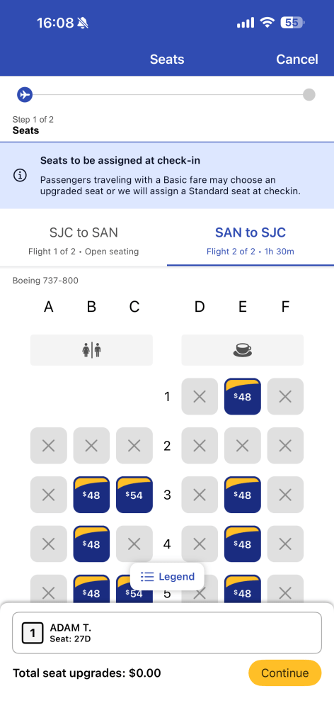 I get it — Southwest needs to make money and be more competitive vis-à-vis other airlines. But like I said in my previous post, all of these changes run the risk of alienating loyal customers. The lady sitting next to me on my return to San Jose was also a longtime Southwest customer, and she wasn’t happy with the recent changes either.