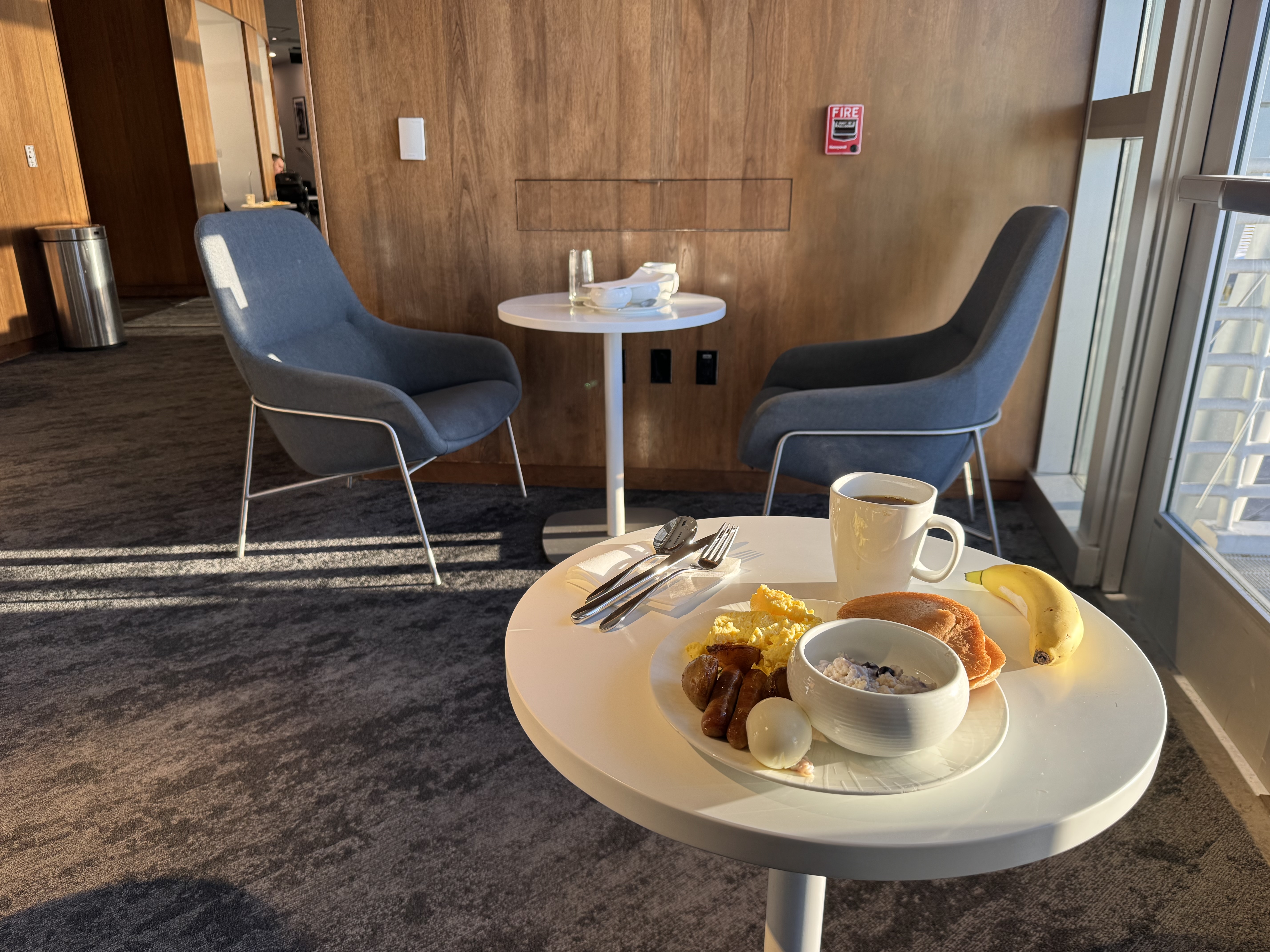 One thing that I didn’t account for when traveling with no luggage is how to tell people that you’re still using a seat in the lounge. Normally, people would leave their backpacks and roller bags by their table, but with no luggage, what do you do? When I went to get seconds, I left my jacket on the booth chair. Otherwise, someone would have swooped in to grab my spot. By the time I left, the lounge was packed, and people were walking around looking for an empty place to sit.