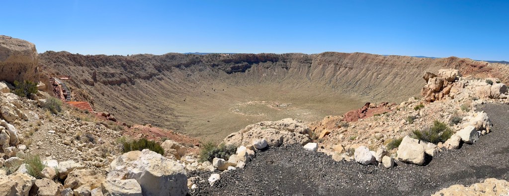 I checked out of my hotel in Las Vegas in the wee hours of Wednesday morning. The hotel didn’t have a shuttle bus, but they said they could call a car for me. I declined, because I was already planning on walking from the hotel, which was located near the Las Vegas Convention Center, to the airport. I’ve done this over half a dozen times in the past, starting back when I was working at Recode. The route is under three miles and normally takes me about 45 minutes. Construction on Paradise Road near the airport — some kind of flood control infrastructure — took me on the left side of Paradise instead of the right. The man-made depression in the ground reminded me of a smaller version of Meteor Crater that I had visited the previous week.